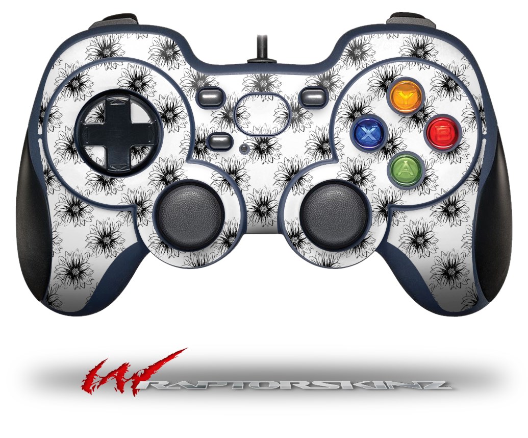 Kearas Daisies Black on White - Decal Style Skin fits Logitech F310 Gamepad Controller (CONTROLLER SOLD SEPARATELY)