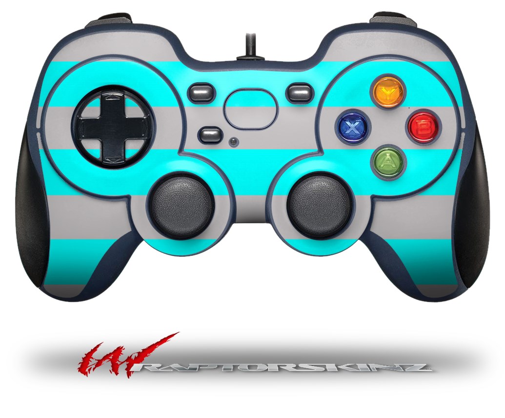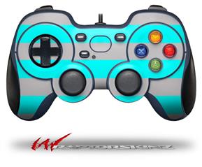 Psycho Stripes Neon Teal and Gray - Decal Style Skin fits Logitech F310 Gamepad Controller (CONTROLLER SOLD SEPARATELY)