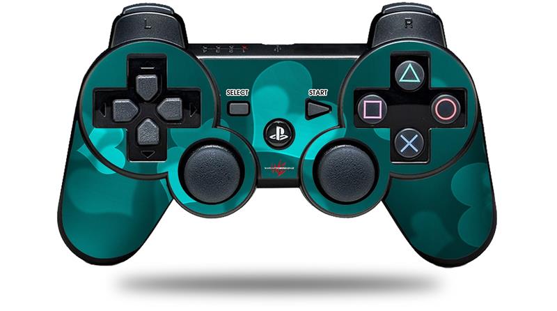Sony PS3 Controller Decal Style Skin - Bokeh Hearts Neon Teal (CONTROLLER NOT INCLUDED)