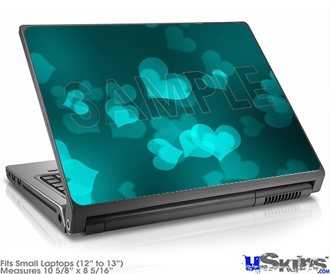 Laptop Skin (Small) - Bokeh Hearts Neon Teal