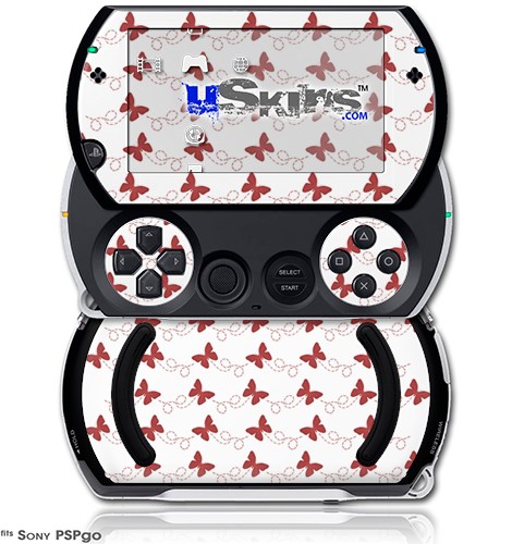 Pastel Butterflies Red on White - Decal Style Skins (fits Sony PSPgo)