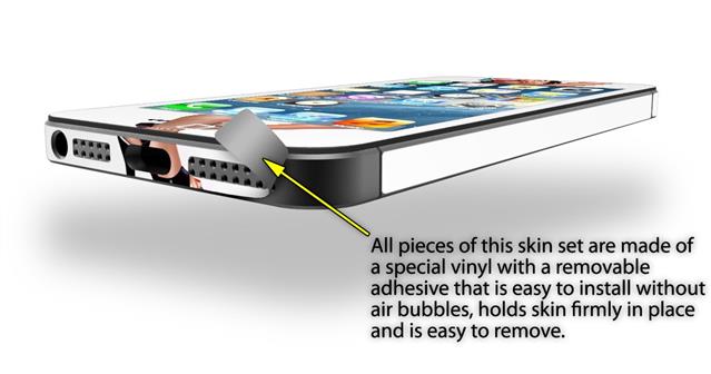 uSkins™ are self adhering vinyl skins that help prevent scratches and look great doing it. Unlike bulky silicon, plastic or metal cases and faceplates, uSkins are designed to be thin and very tough. uSkins are a composite of two layers of commercial grade materials. The bottom layer is a soft, flexible vinyl with a special removable adhesive that is easily positioned, applied without air bubbles, and effortlessly removed without leaving a sticky residue. Next we print the bottom layer with UV protected, fade resistant inks that deliver superb photo quality designs in vibrant colors. Finally we bond a professional grade laminate over the entire skin adding a glossy protective finish.