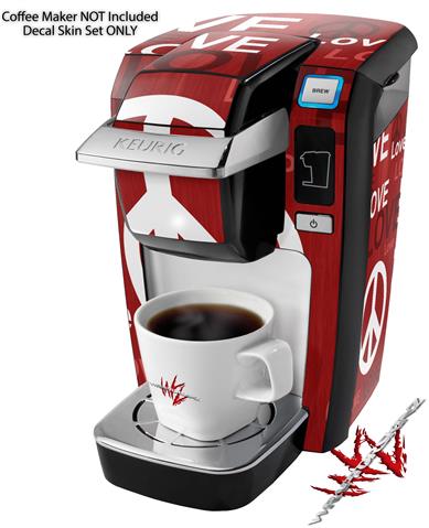 Decal Style Vinyl Skin compatible with Keurig K10 / K15 Mini Plus Coffee Makers Love and Peace Red (KEURIG NOT INCLUDED)