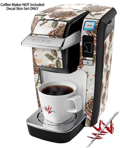 Decal Style Vinyl Skin compatible with Keurig K10 / K15 Mini Plus Coffee Makers Flowers Pattern Roses 20 (KEURIG NOT INCLUDED)