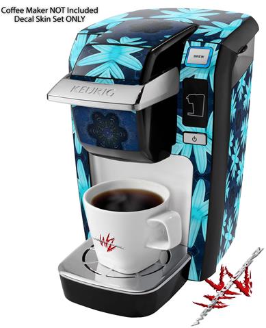 Decal Style Vinyl Skin compatible with Keurig K10 / K15 Mini Plus Coffee Makers Abstract Floral Blue (KEURIG NOT INCLUDED)