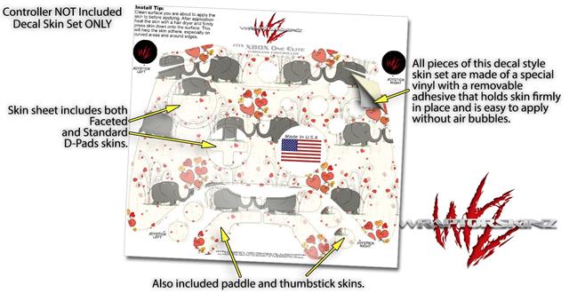 Elephant Love - Decal Style Skin fits Microsoft XBOX One ELITE Wireless Controller