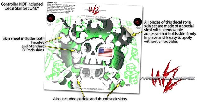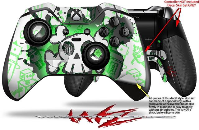 Cartoon Skull Green - Decal Style Skin fits Microsoft XBOX One ELITE Wireless Controller