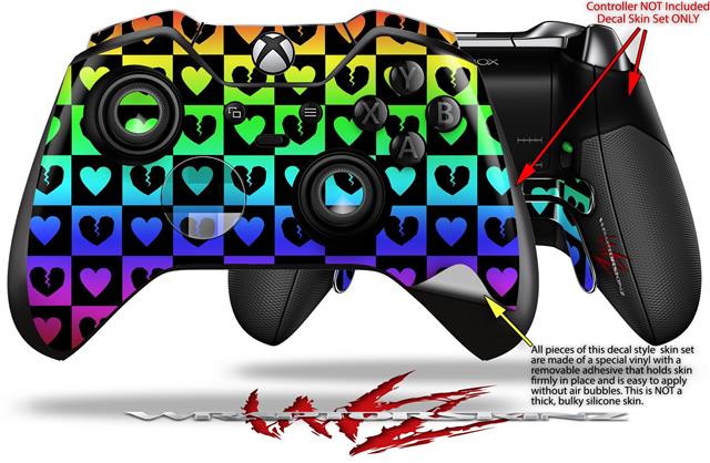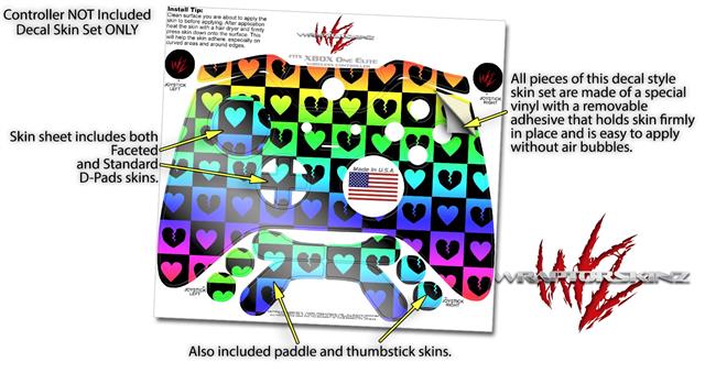 Love Heart Checkers Rainbow - Decal Style Skin fits Microsoft XBOX One ELITE Wireless Controller