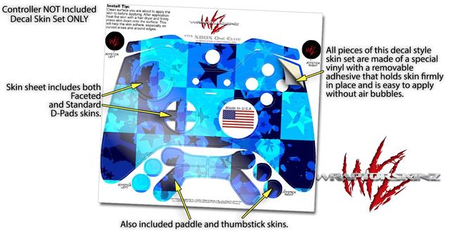 Blue Star Checkers - Decal Style Skin fits Microsoft XBOX One ELITE Wireless Controller