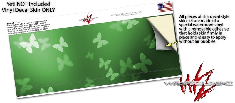 Skin Decal Wrap for Yeti Colster, Ozark Trail and RTIC Can Coolers - Bokeh Butterflies Green (COOLER NOT INCLUDED)