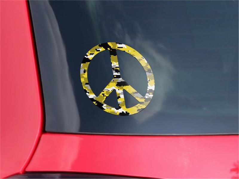 WraptorCamo Digital Camo Yellow - Peace Sign Car Window Decal 6 x 6 inches