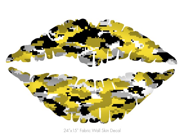 WraptorCamo Digital Camo Yellow - Kissing Lips Fabric Wall Skin Decal measures 24x15 inches