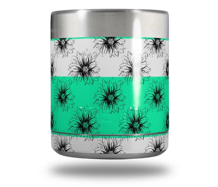 Skin Decal Wrap for Yeti Rambler Lowball - Kearas Daisies Stripe Sea Foam