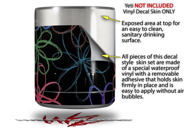 Skin Decal Wrap for Yeti Rambler Lowball - Kearas Flowers on Black