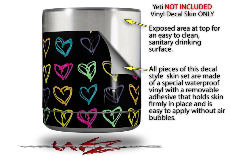 Skin Decal Wrap for Yeti Rambler Lowball - Kearas Hearts Black