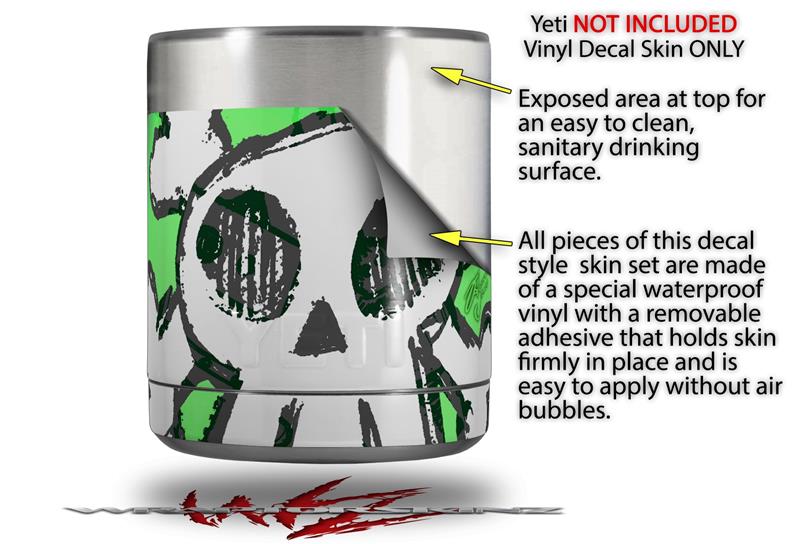 Skin Decal Wrap for Yeti Rambler Lowball - Cartoon Skull Green