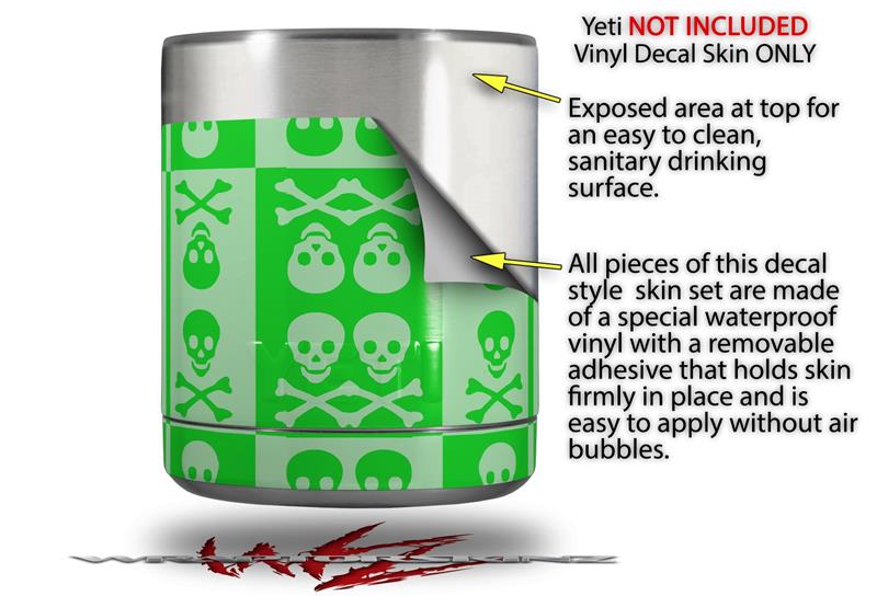 Skin Decal Wrap for Yeti Rambler Lowball - Skull And Crossbones Pattern Green