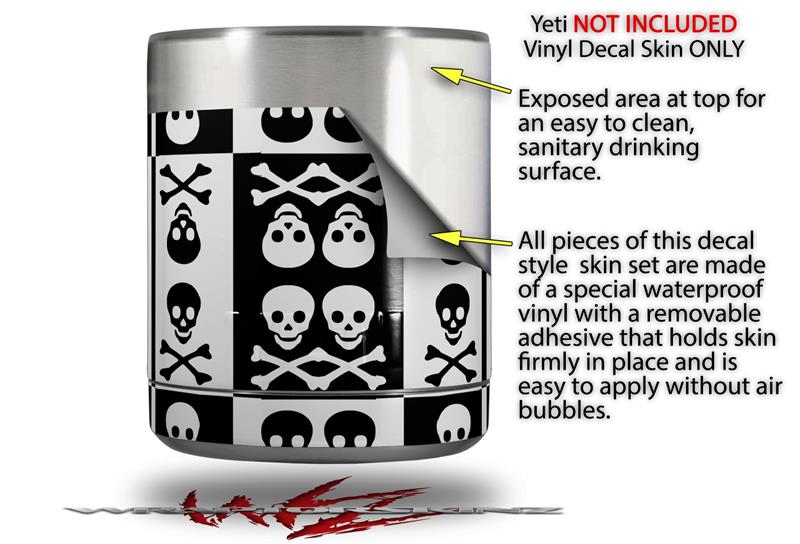 Skin Decal Wrap for Yeti Rambler Lowball - Skull And Crossbones Pattern Bw
