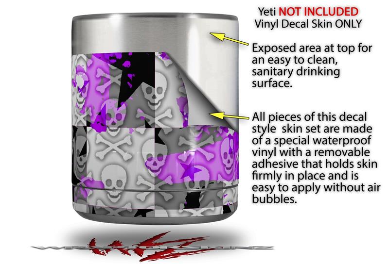 Skin Decal Wrap for Yeti Rambler Lowball - Purple Checker Skull Splatter