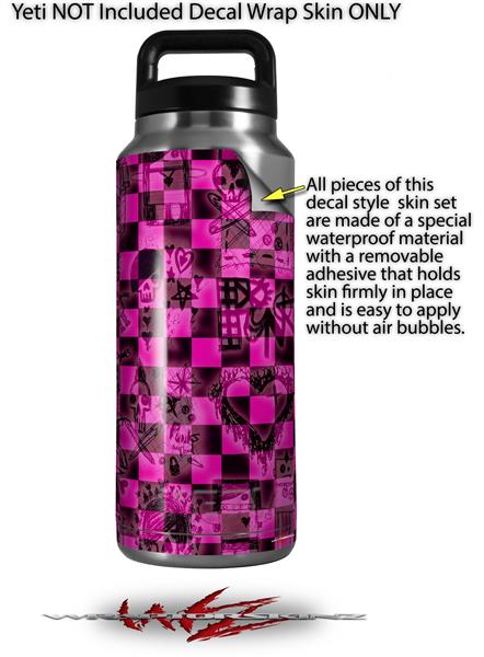 WraptorSkinz Skin Decal Wrap for Yeti Rambler Bottle 36oz Pink Checkerboard Sketches (YETI NOT INCLUDED)