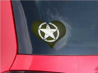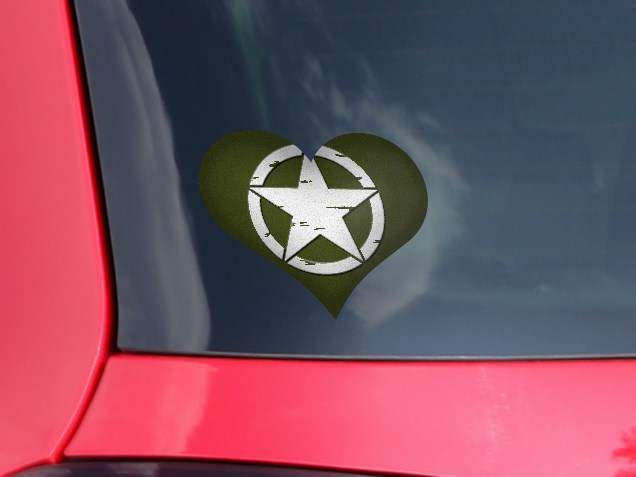 Distressed Army Star - I Heart Love Car Window Decal 6.5 x 5.5 inches
