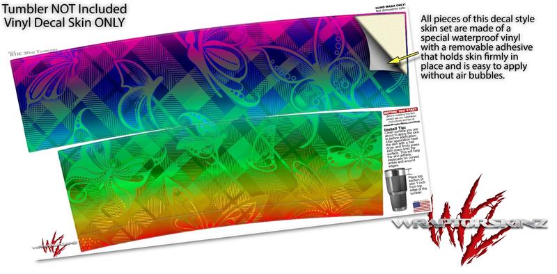 WraptorSkinz Skin Wrap compatible with RTIC 30oz ORIGINAL 2017 AND OLDER Tumblers Rainbow Butterflies (TUMBLER NOT INCLUDED)