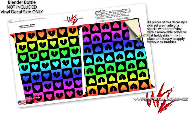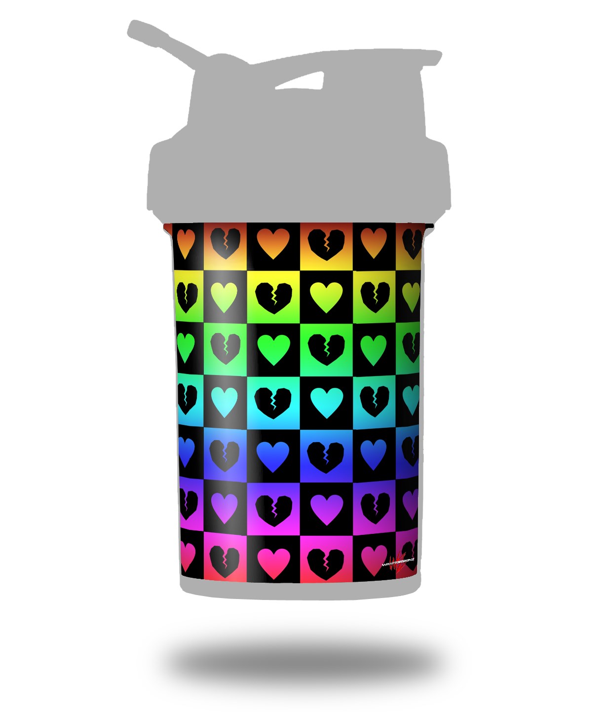 Decal Style Skin Wrap works with Blender Bottle 22oz ProStak Love Heart Checkers Rainbow (BOTTLE NOT INCLUDED)