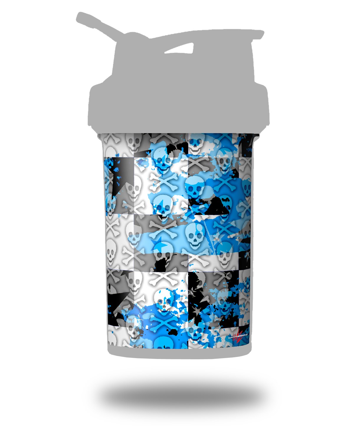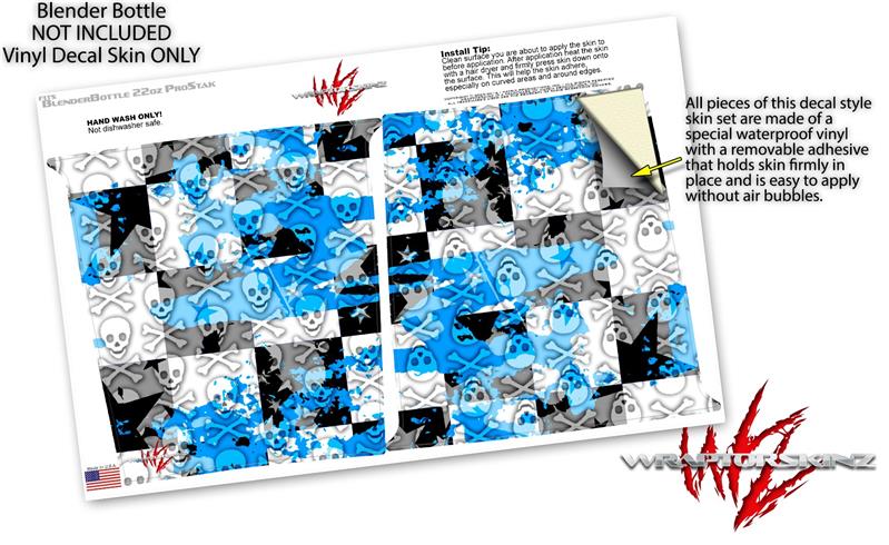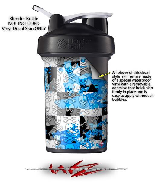Decal Style Skin Wrap works with Blender Bottle 22oz ProStak Checker Skull Splatter Blue (BOTTLE NOT INCLUDED)