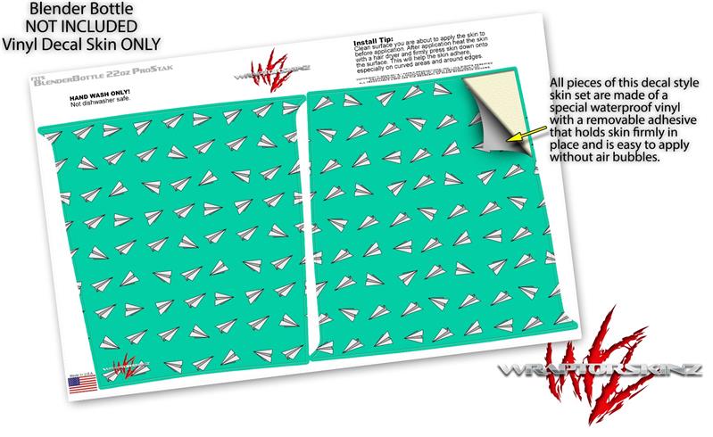 Decal Style Skin Wrap works with Blender Bottle 22oz ProStak Paper Planes Turquoise (BOTTLE NOT INCLUDED)