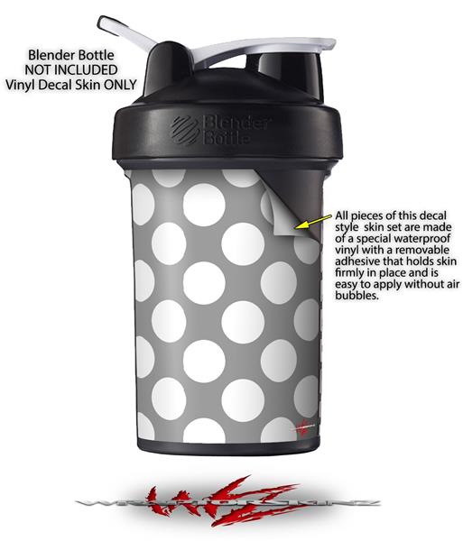 Decal Style Skin Wrap works with Blender Bottle 22oz ProStak Kearas Polka Dots Whtie On Gray (BOTTLE NOT INCLUDED)