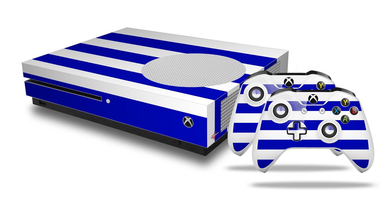 WraptorSkinz Decal Skin Wrap Set works with 2016 and newer XBOX One S Console and 2 Controllers Psycho Stripes Blue and White