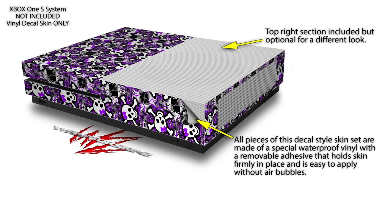 WraptorSkinz Decal Skin Wrap Set works with 2016 and newer XBOX One S Console and 2 Controllers Splatter Girly Skull Purple