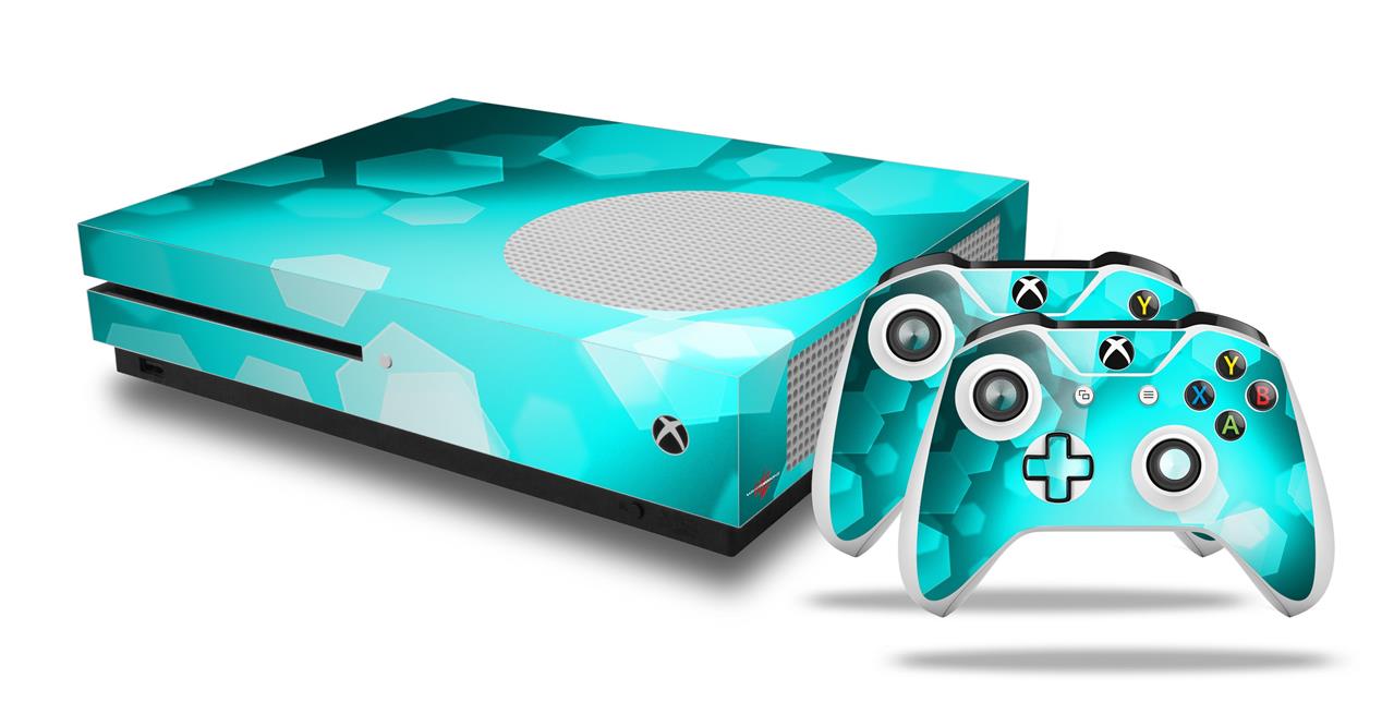 WraptorSkinz Decal Skin Wrap Set works with 2016 and newer XBOX One S Console and 2 Controllers Bokeh Hex Neon Teal