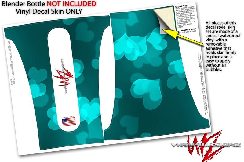Decal Style Skin Wrap works with Blender Bottle 28oz Bokeh Hearts Neon Teal (BOTTLE NOT INCLUDED)