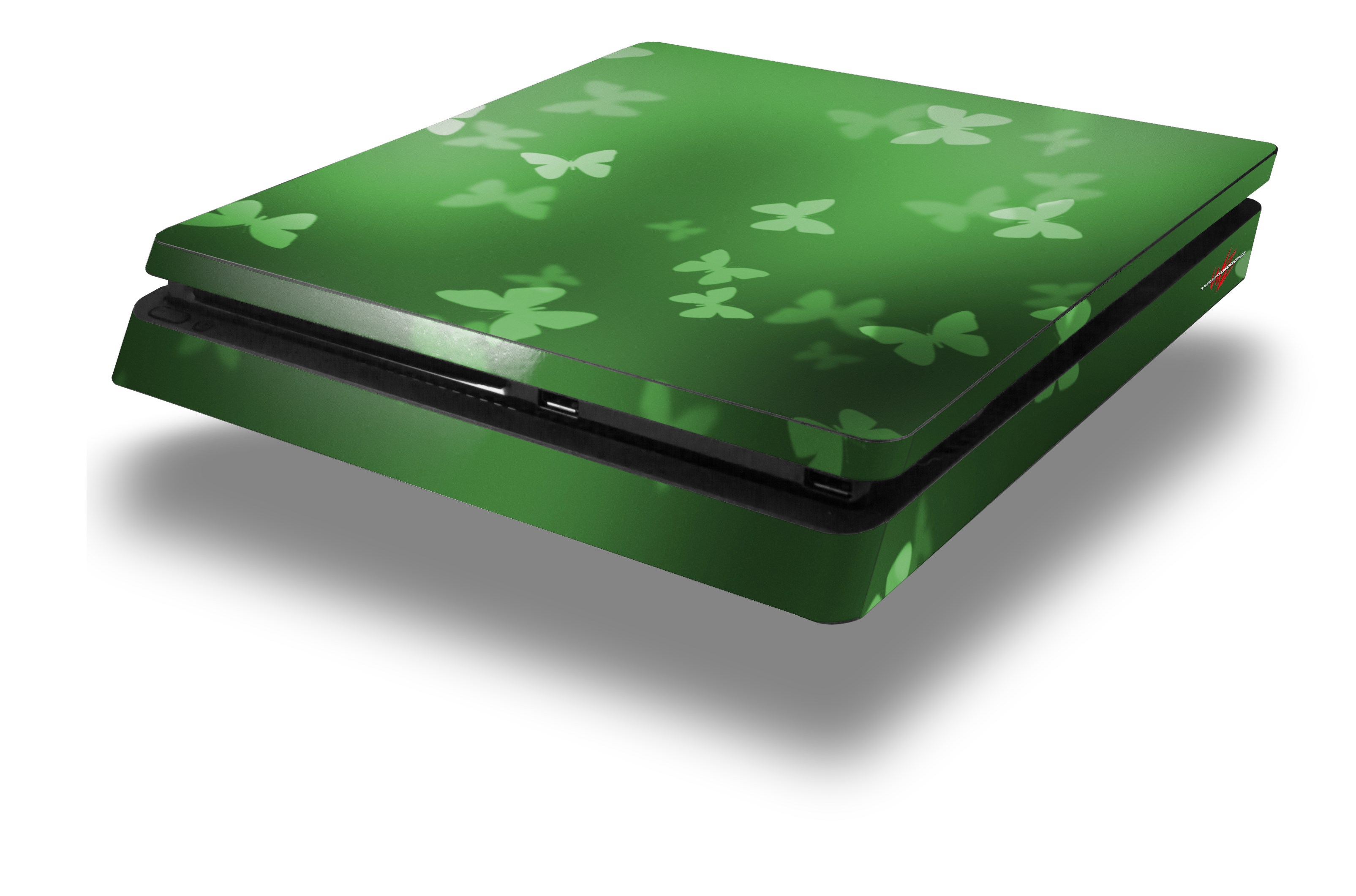 Vinyl Decal Skin Wrap compatible with Sony PlayStation 4 Slim Console Bokeh Butterflies Green (PS4 NOT INCLUDED)