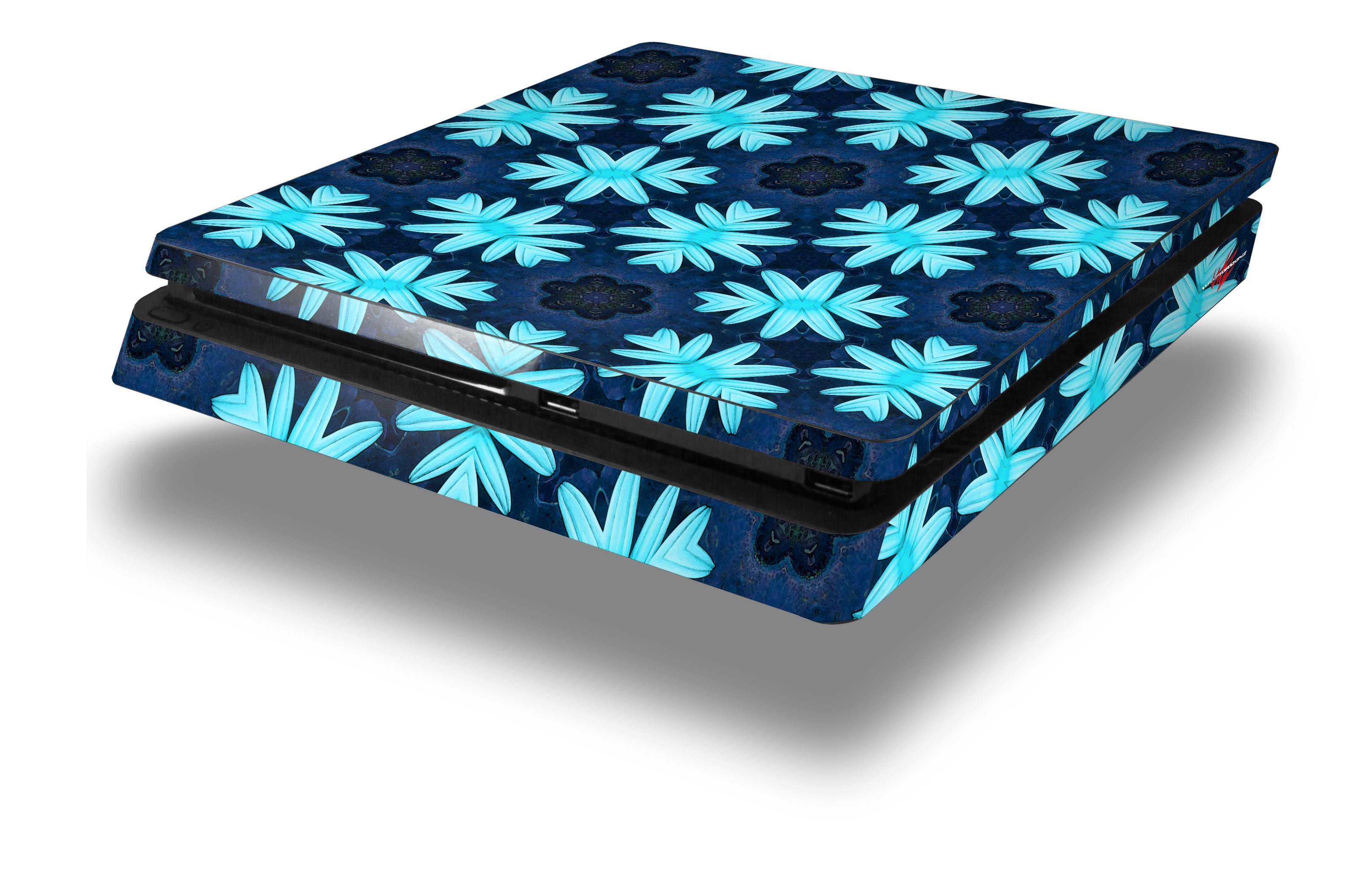 Vinyl Decal Skin Wrap compatible with Sony PlayStation 4 Slim Console Abstract Floral Blue (PS4 NOT INCLUDED)