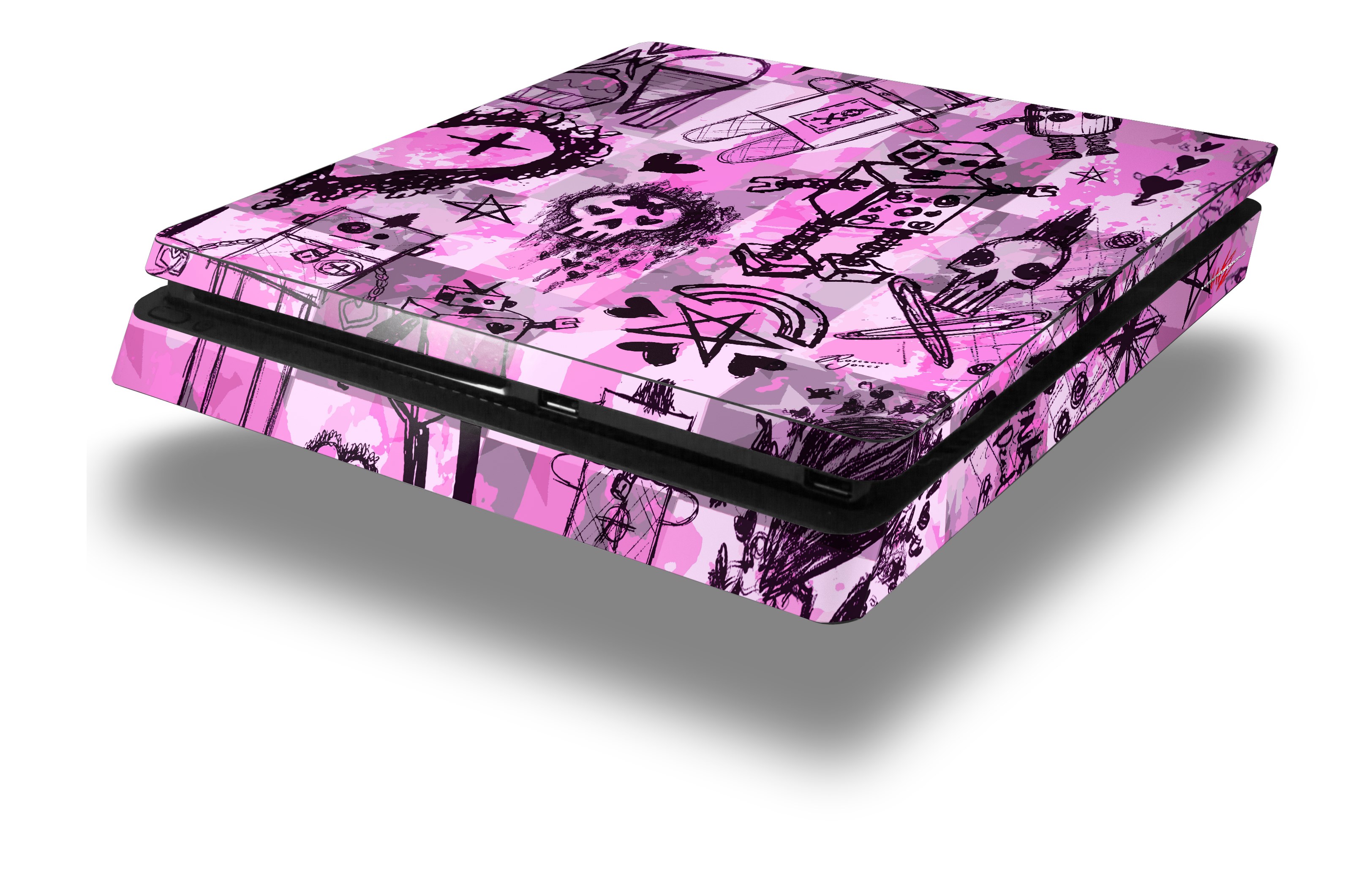 Vinyl Decal Skin Wrap compatible with Sony PlayStation 4 Slim Console Scene Kid Sketches Pink (PS4 NOT INCLUDED)