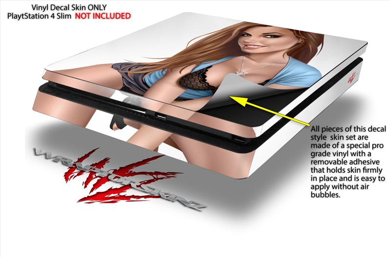 Vinyl Decal Skin Wrap compatible with Sony PlayStation 4 Slim Console Cleavage Sexy Pinup Girl (PS4 NOT INCLUDED)