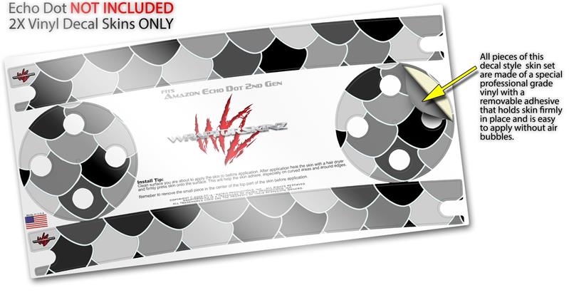 Skin Wrap Decal Set 2 Pack for Amazon Echo Dot 2 - Scales Black (2nd Generation ONLY - Echo NOT INCLUDED)