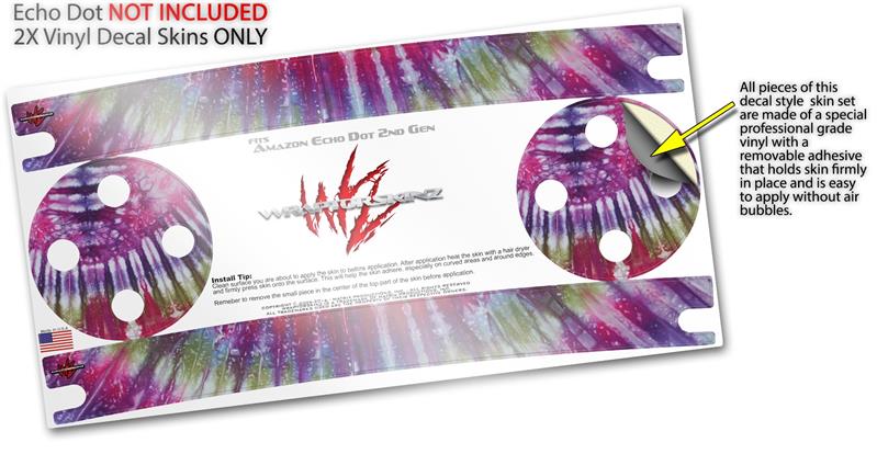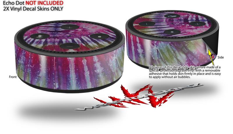 Skin Wrap Decal Set 2 Pack for Amazon Echo Dot 2 - Tie Dye Red Stripes (2nd Generation ONLY - Echo NOT INCLUDED)