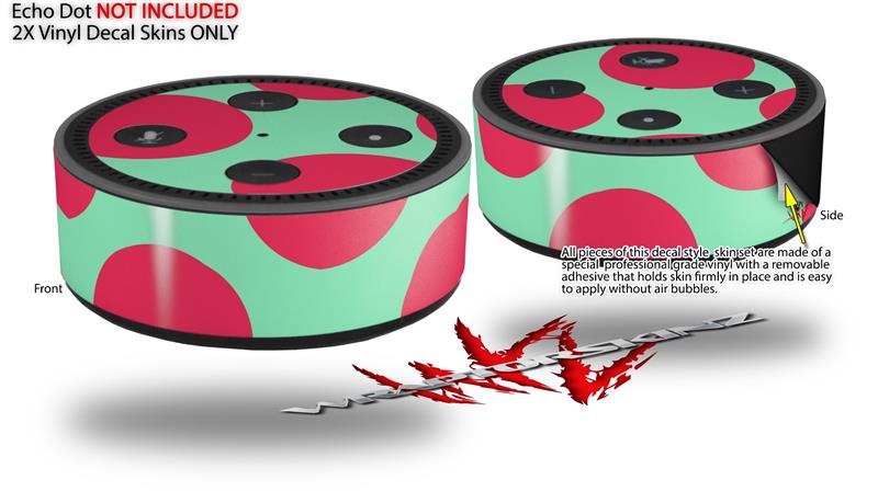 Skin Wrap Decal Set 2 Pack for Amazon Echo Dot 2 - Kearas Polka Dots Pink And Blue (2nd Generation ONLY - Echo NOT INCLUDED)