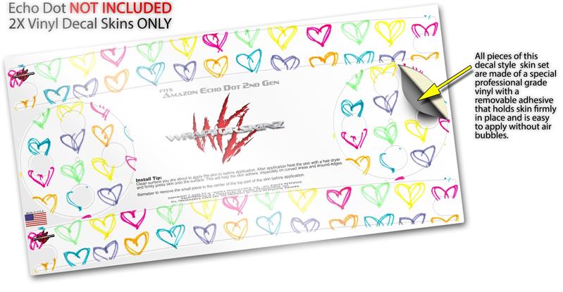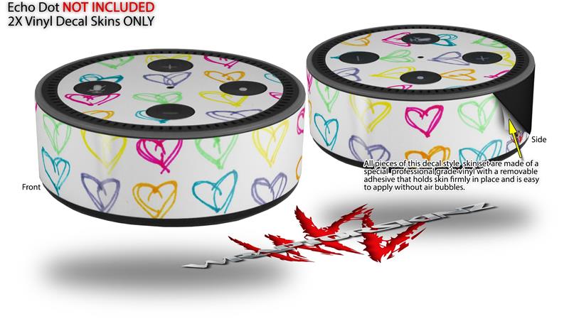 Skin Wrap Decal Set 2 Pack for Amazon Echo Dot 2 - Kearas Hearts White (2nd Generation ONLY - Echo NOT INCLUDED)
