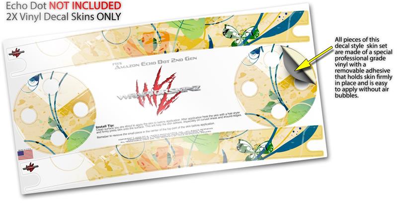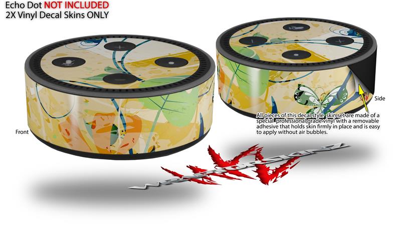 Skin Wrap Decal Set 2 Pack for Amazon Echo Dot 2 - Water Butterflies (2nd Generation ONLY - Echo NOT INCLUDED)
