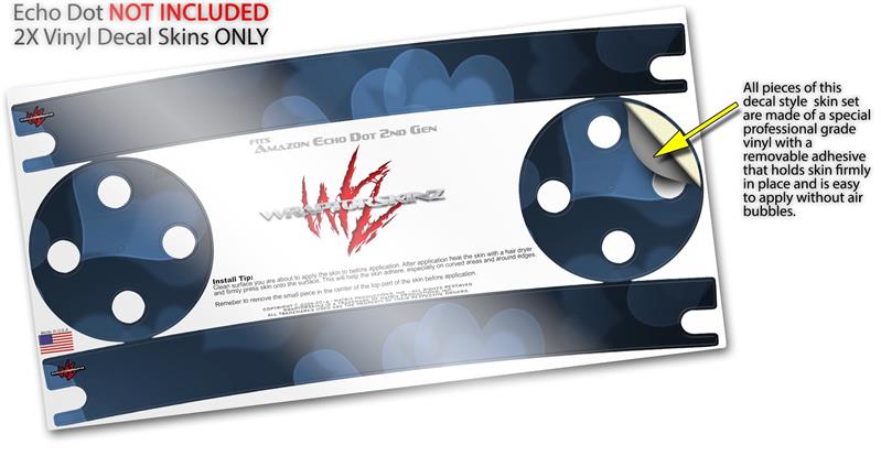 Skin Wrap Decal Set 2 Pack for Amazon Echo Dot 2 - Bokeh Hearts Blue (2nd Generation ONLY - Echo NOT INCLUDED)