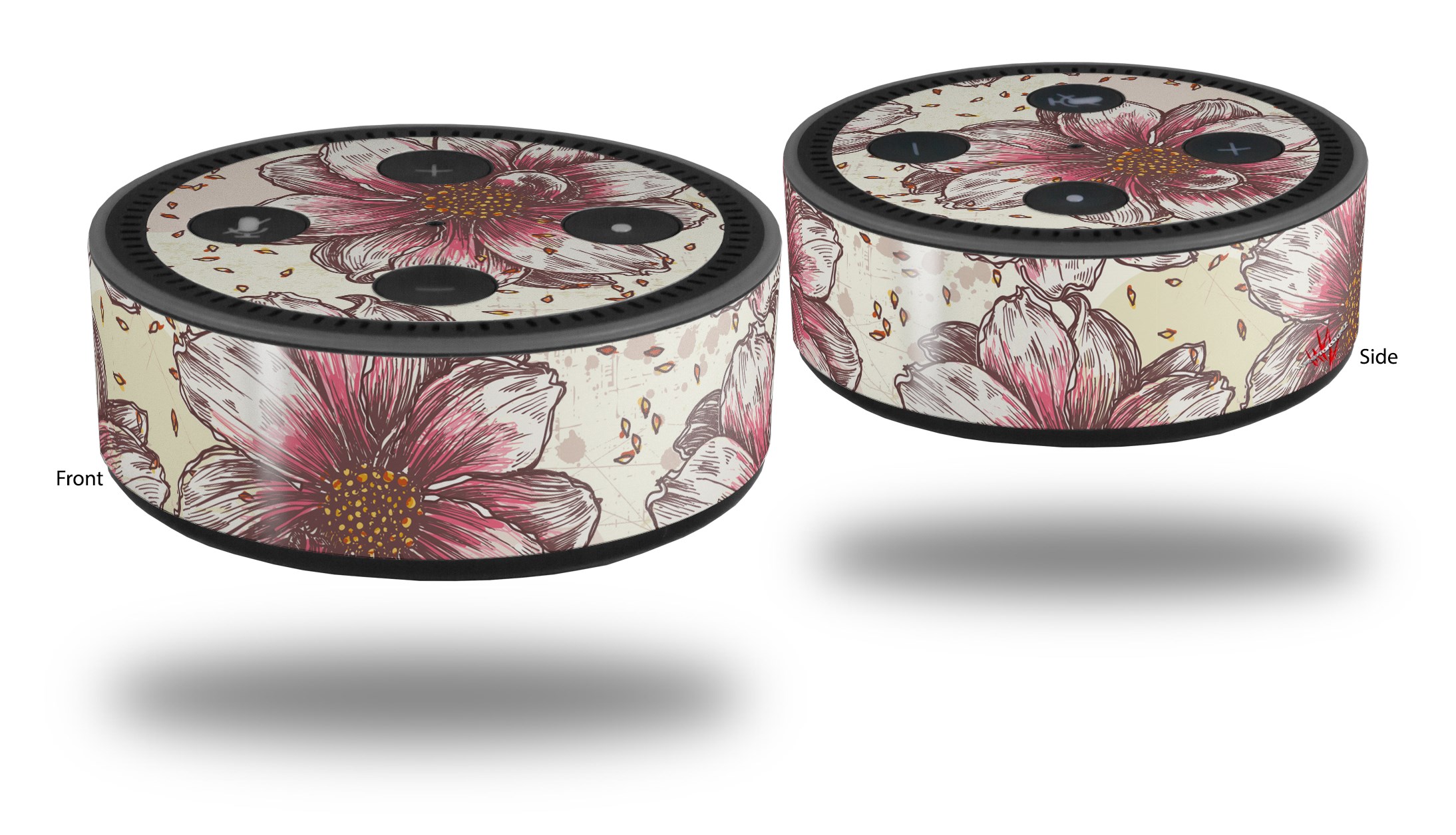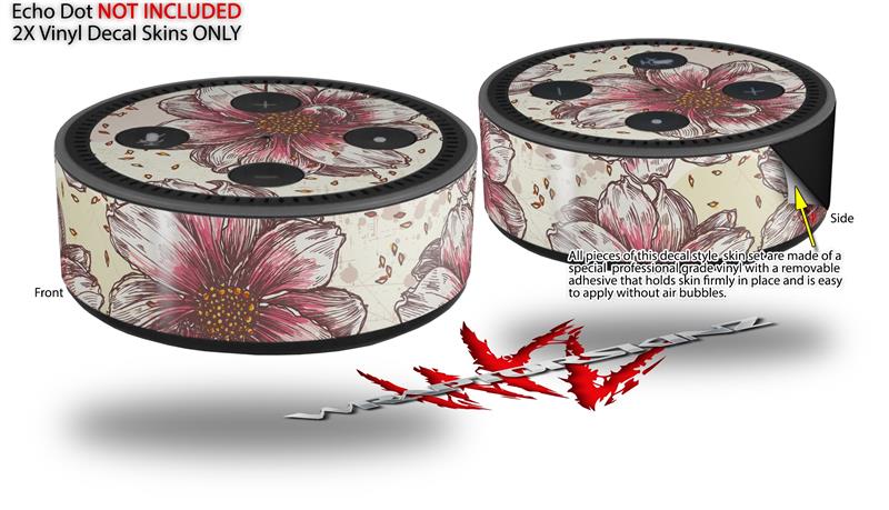Skin Wrap Decal Set 2 Pack for Amazon Echo Dot 2 - Flowers Pattern 23 (2nd Generation ONLY - Echo NOT INCLUDED)