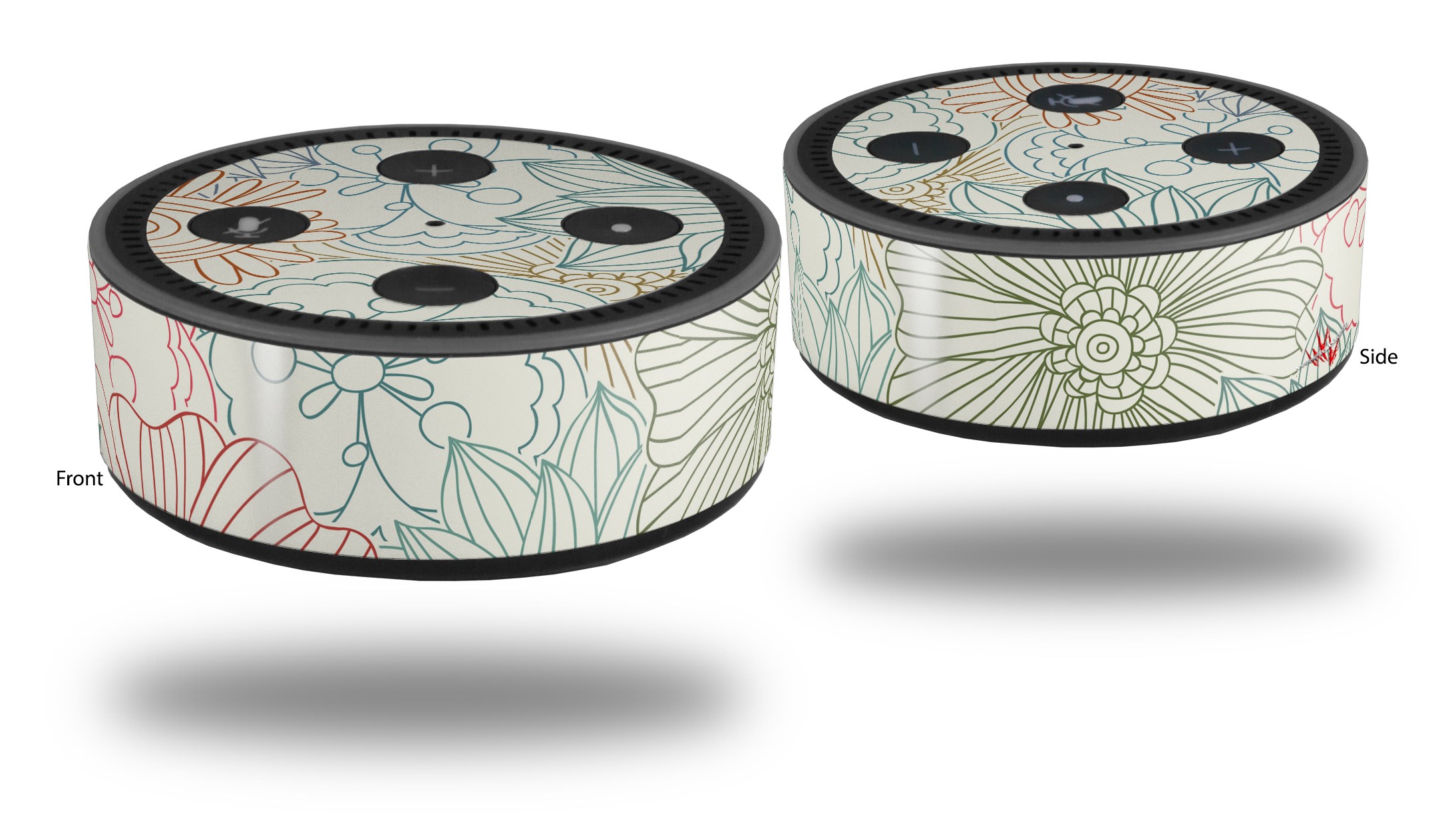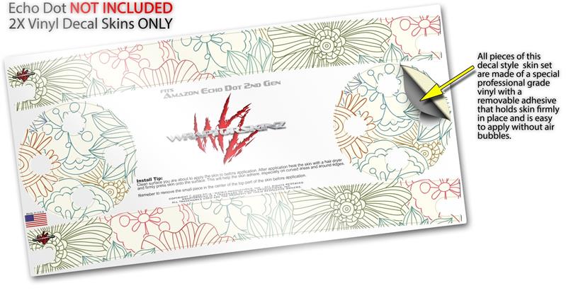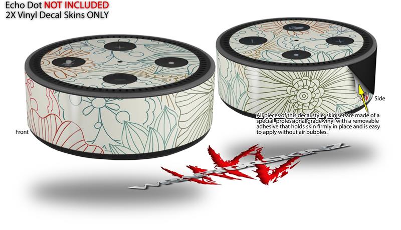 Skin Wrap Decal Set 2 Pack for Amazon Echo Dot 2 - Flowers Pattern 02 (2nd Generation ONLY - Echo NOT INCLUDED)