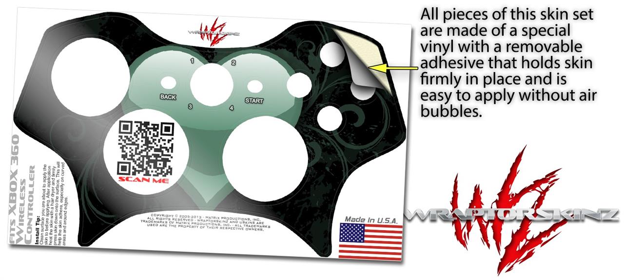 XBOX 360 Wireless Controller Decal Style Skin - Glass Heart Grunge Seafoam Green (CONTROLLER NOT INCLUDED)