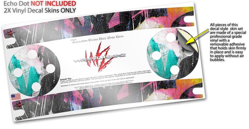 Skin Wrap Decal Set 2 Pack for Amazon Echo Dot 2 - Graffiti Grunge (2nd Generation ONLY - Echo NOT INCLUDED)