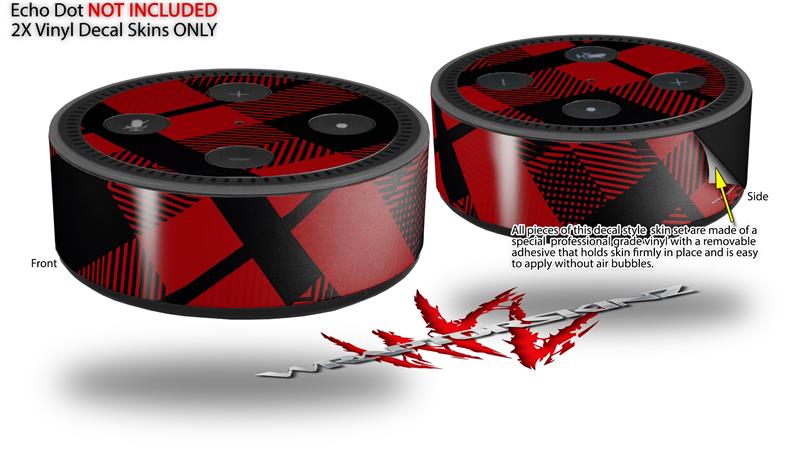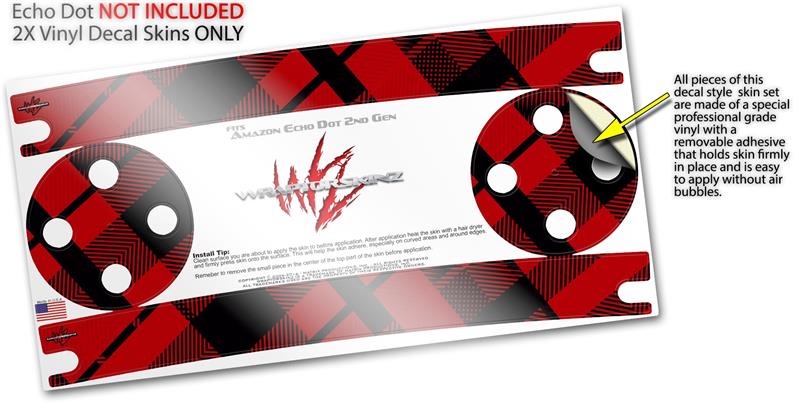 Skin Wrap Decal Set 2 Pack for Amazon Echo Dot 2 - Red Plaid (2nd Generation ONLY - Echo NOT INCLUDED)