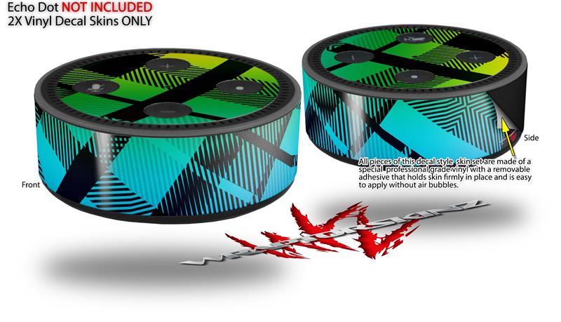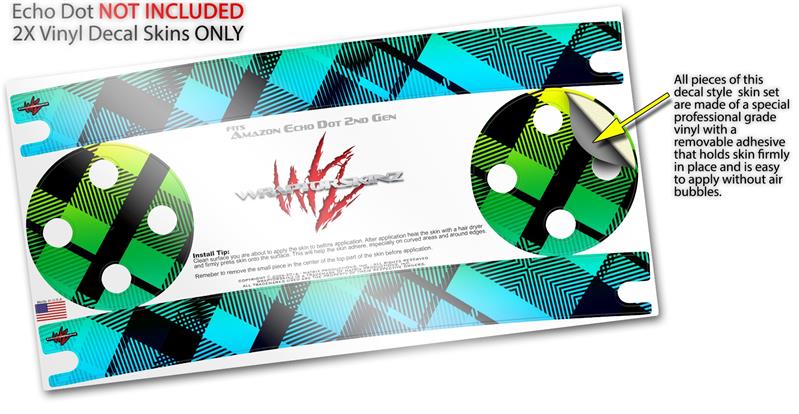Skin Wrap Decal Set 2 Pack for Amazon Echo Dot 2 - Rainbow Plaid (2nd Generation ONLY - Echo NOT INCLUDED)